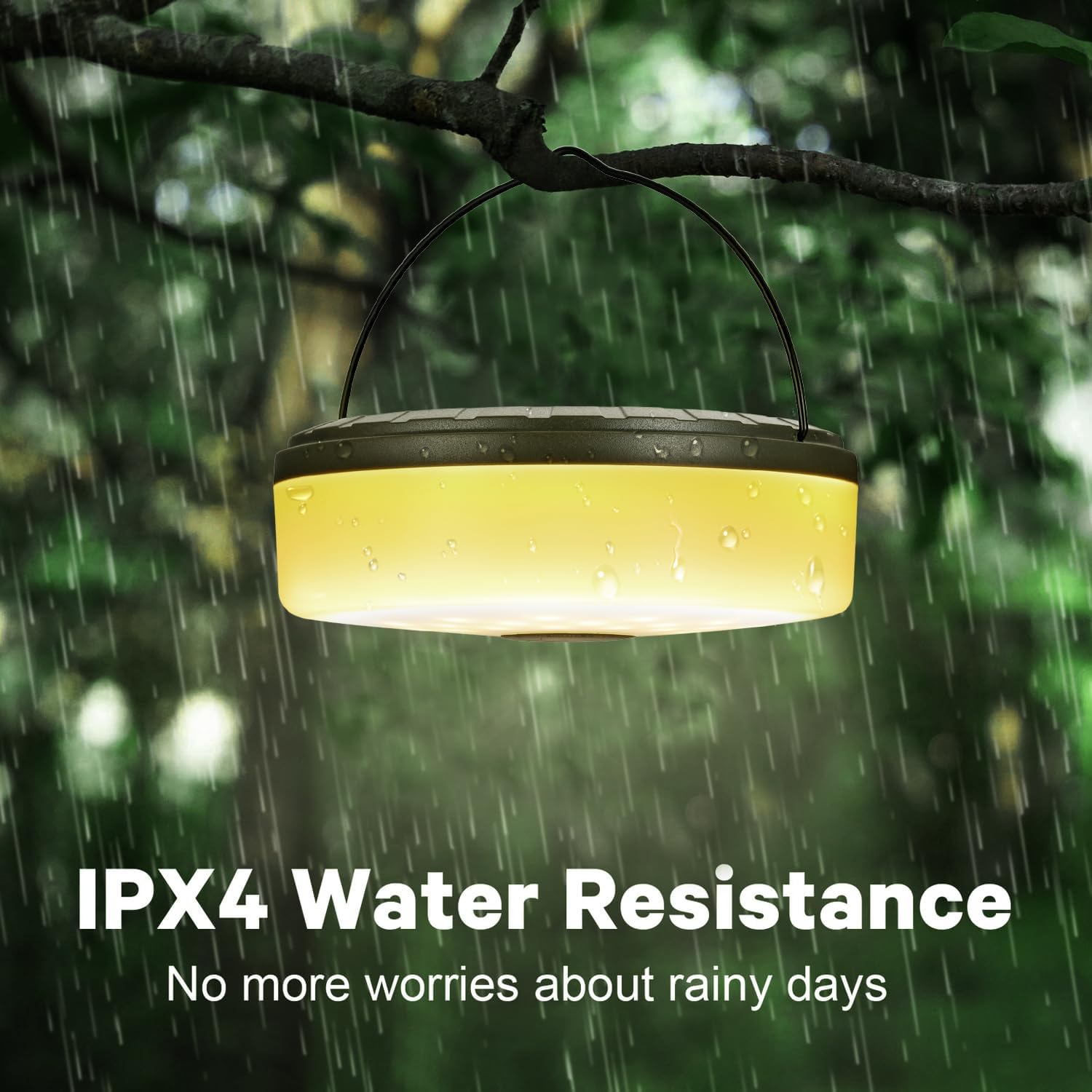 Solar Powered & USB Rechargeable: This 3000mAh camping string lights features a high-efficiency solar panel and USB charging port. Both methods can be fully charged within 4-6 hours and provide up to 8 hours of continuous use. No matter what the weather is, you don't have to worry about charging issues.